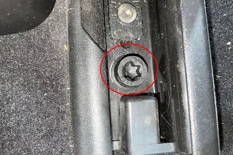 中控台螺丝检查发现拧动痕迹,这不是个好兆头,没事儿拆中控台干什么?我相信这里的拆装不是车主所为。
