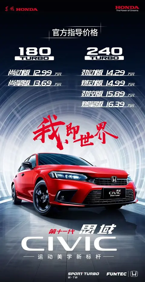 2021年9月24日,第十一代思域正式迎来上市,新车的官方指导价为12.99-16.39万元。相比上一代思域,全新思域的外观和内饰进行了大改,但是其“钢炮”的定位依然不变,并且动力参数还有小幅度提升。