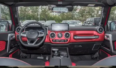 【内饰】与外观的豪放不同,BJ40城市猎人版的内饰更加精细。内饰颜色以红和黑以及黑和蓝撞色为主,座椅除了低配版本外都是以仿皮包裹,手感也更加柔软。圆形空调出风口并没有带来不适感,反而增加了整个车的高级感。12.3英寸的悬浮中控屏使用更加流畅。