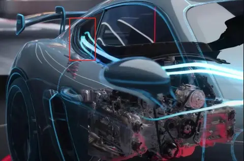 虽然发动机直接来自911 GT3,但特殊之处是保时捷重新设计了进气口。除了和普通718一样,车门后方的进气口外,新的发动机进气口位于车窗的后方,也就是传统三角窗的位置。这是整辆车中最酷的部分。