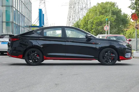 首先外观方面,第一眼看到这款车就被强烈的视觉感所冲击到:黑色车身搭配红色撞色下包围,看起来就很有驾驶感;扁平犀利的车头,一眼展示出这款车凶猛的运动特性;分体式的格栅设计又凸显出层次感,区别于其他车型的整体式格栅,十分独特。矩阵式的大灯狭长又犀利,再加上耀眼的红色下包围,既运动还有未来感,整个气场很足。