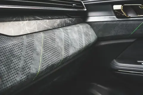 车厢内饰的做工用料是领克的强项,这台05+无论是缝线还是饰板拼接,都挑不出任何毛病,相当扎实。采用大量翻毛皮包裹,配上和车身漆面一样的绿色元素,毫无疑问又将竞技氛围拉满。