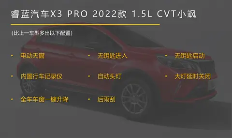 推荐车型:睿蓝汽车X3 PRO 2022款 1.5L CVT小飒