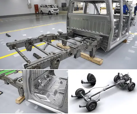 很可能,卡路里采用的是发动机纵置承载式皮卡设计,显著不同于主流非承载皮卡。当前非承载皮卡,售价降到6万已经很困难,都是一些很早期的产品,比如长城风骏5等,早已没有利润。卡路里的6万定位并保持利润,必须从结构入手。承载式皮卡,当然比非承载成本低,自重大大减轻,当然承载式也有纵梁,只是与车身焊接在一起,增加刚度,减轻钢材用量,载重量并不打折1。比如五菱征途就是这种结构,只是采用短头设计,注意观察,五菱征途的后桥,也是5孔螺栓。