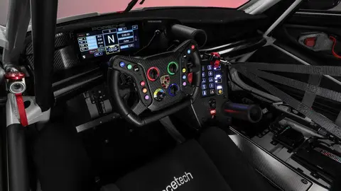 内饰上,保时捷通过将座椅移近中心来满足国际汽联新制定的冲击保护要求。这也让保时捷能够改进赛车的防滚架。可调节的踏板和方向盘抵消了固定的座椅位置。改进的六点式赛车安全带扣环将有助于在更换车手期间节省大约一秒钟的时间。