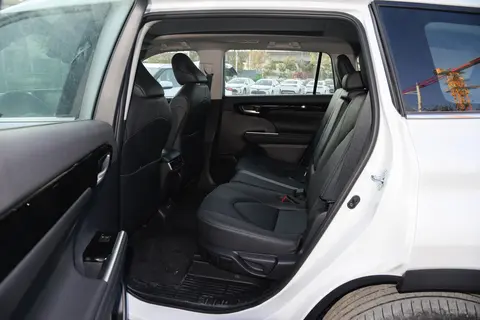 丰田汉兰达车头部分采用大面积黑色蜂巢式中网中间一根镀铬饰条贯穿丰田车标,两侧为全LED大灯组,两侧为黑色进气格栅。车身侧面车顶上方为银色行李架,中部一根平缓的腰线贯穿,下方大面积白色包围搭配20英寸轮毂。车尾上方一个大尺寸尾翼中间镶嵌着高位刹车灯,中间丰田车标搭配两侧后尾灯组,最下方银色护板点缀,整台车的外观依旧采用家族式设计语言。