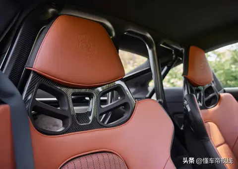 911 S/T车内配有金色专属标识,还配备了更加轻量化的拉带式拉手,并且使用了皮质材料包覆,座椅后方则带有防滚架。