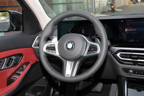 宝马3系的内饰为黑红拼色配色,经典的三辐式方向盘也出现在它身上,加上环绕式布局,有着不错的运动感。车内材质以软性皮质材质为主,中控台则是搪塑和烤漆饰板结合。另外双联屏、电子换挡机构的出现,也提升了车的科技属性。