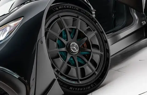 AMG ONE配备了前19英寸后20英寸轮圈,中间的碳纤维导流片可以减低风阻,并提供锻造铝及锻造镁合金可选。搭配的轮胎为米其林专定制开发的Pilot Sport Cup 2R M01。尺寸为前285/35ZR19,后335/30ZR20。