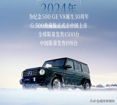[懂车帝原创 产品] 日前,我们从梅赛德斯-奔驰官方获悉,奔驰G 500典藏版正式上市,官方指导价239万元,新车全球限量发售1500辆,其中中国市场限量发售198辆。
