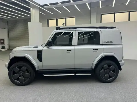 车身侧采用了四轮四角的设计,能够看到前悬和后悬都非常短,这也是硬派SUV的主要特征,车顶行李架仍然可见的厚实隐藏式车门把手也是最新的流行时尚, CD柱之间直接采用了封死的样式,镶嵌有V23车标,再度强化了个性的感觉。