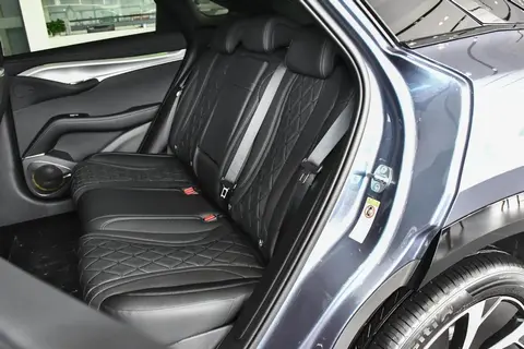 内饰以黑色作为主色调,环抱式布局,在用料上也很有质感,座舱的主要裸露区域都采用真皮覆盖,还可以看到明显的缝线痕迹,再搭配上少量的高档真木,豪华氛围得到了不错的凸显。15.6英寸的可旋转高清大屏幕与10.25英寸全液晶仪表是全系标配,车机内置D100芯片,并搭载DiLink系统,具备5G网络、可见即可说、导航路况信息展示等丰富功能。