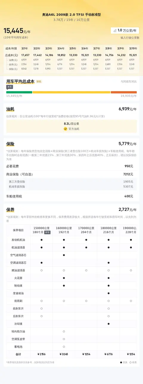 关于用车成本,根据估算,这辆车的年均综合用车成本大概在每年1.5万元左右。但需要注意的是,这个金额会根据车辆的实际使用情况有所不同。