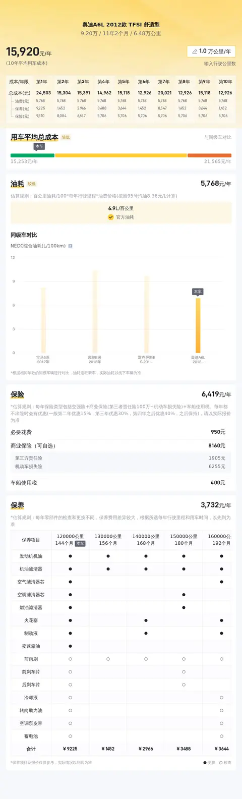 除了关注市场价格,购车后的花费也是必不可少的考虑点。据估算,这辆车的年均综合用车成本约1.6万元左右。当然,具体的费用会因个人使用情况而有所差异。