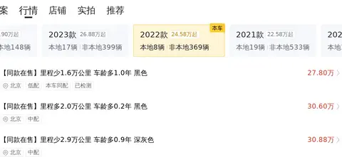 目前这款车的二手车行情大致在26.30万至31.68万之间。在全国范围内,相同车型的价格差异明显,低至26万出头,高至31万以上。这种价格波动主要由车辆的年份、里程和维护状况等关键因素决定,车况的好坏是确定最终售价的关键元素。