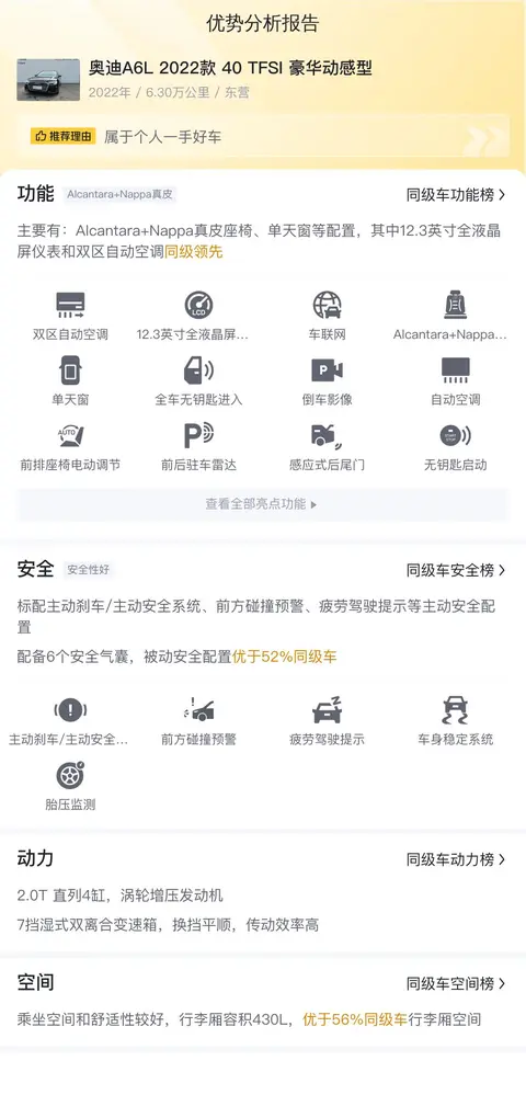 总结来说,这款二手奥迪A6L在配置、动力和空间等方面都展现出了不错的实力,对于追求性价比的消费者来说,是个不错的选择。