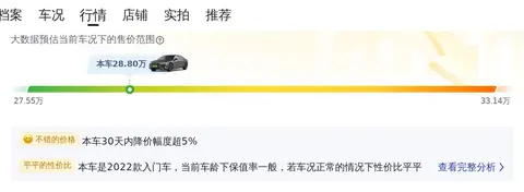 市场行情也是决定一款车价值的重要因素。目前这款车的二手车行情大致在27.55万至33.14万之间。当然,市场行情只能作为一个大体的参照,二手车的价格仍由车龄、行驶里程及维护状态等多个变量共同决定。