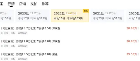 当前市场上,这款车型的二手车价格区间大约在27.33万至32.88万之间。值得注意的是,每辆车的车况都有所不同,这也直接影响到它的售价。截止到目前,我们观察到全国范围内共有22辆同款车型在售。