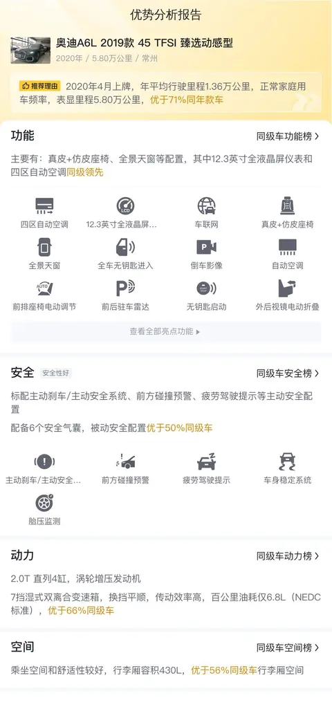 接下来,我们将从车辆的功能配置、动力性能以及空间体验等方面,详细介绍一下这款奥迪A6L。为了让您更直观地了解这款车的优势所在,我们特别准备了一份“优势分析报告”,希望对您有所帮助。