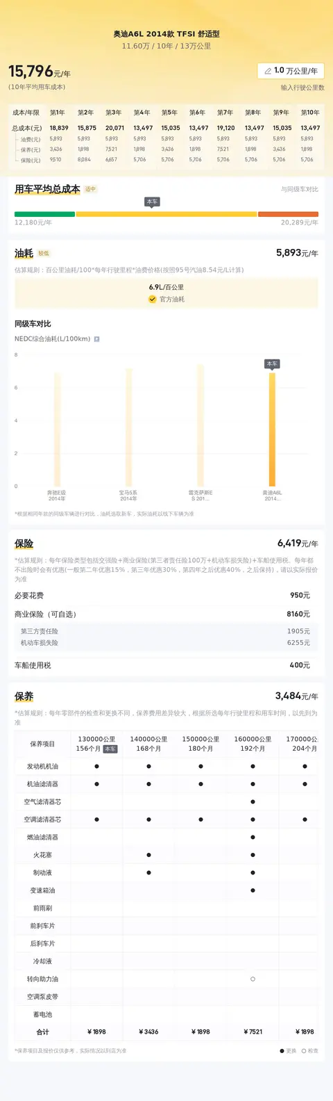 关于用车成本,根据估算,这辆车年均综合用车成本大概在每年1.6万元左右。需要注意的是,这个金额会因为车辆的具体使用情况而有所浮动。