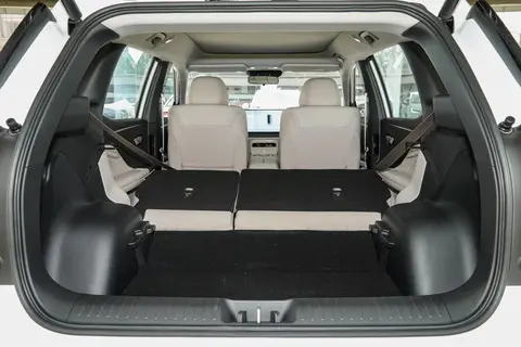 以笔者175cm身高为例,座椅可支持电动调节,入座驾驶位时保持标准的驾驶位置,头部剩余一拳两指,保持驾驶位不变的情况入座后排,腿部剩余一拳多,腿部剩余两拳,整体适合家庭使用,此外,后排座椅支持全平放倒,放一辆自行车也是没有问题的。