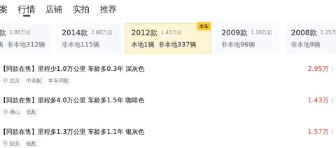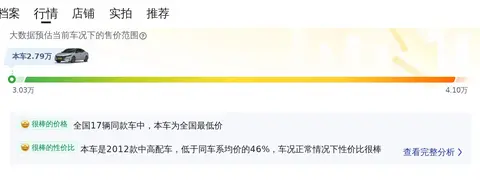 目前的市场行情显示,这款车的二手车行情大致在3.03万至4.10万之间。当然,具体的售价会受到车龄、里程和保养状况等因素的影响。全国范围内,这款车的平均售价为3.56万,价格最高的是北京,最低的是重庆。此外,根据大数据分析,这款车的保值率也相对较高,预计未来三年内价格波动不会太大。