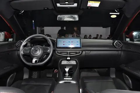 进入车内,新款MG5的内饰采用了红黑撞色的内饰搭配,辅以镀铬装饰的三辐式多功能运动方向盘,展现出运动风格。同时,车辆配备了双12.3英寸大屏中控触摸屏与全液晶仪表盘,搭载斑马维纳斯智能车机系统,支持便捷的语音控制及车家互联等功能,为用户带来更加智能、便捷的用车体验。