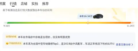 迈腾 2019款 380TSI DSG 豪华型 国V的市场行情价是9.16万-11.20万,它的报价则是10.50万,报价虽然是合理的,但没有什么优势,不过保值率较高,也是不错的选择。