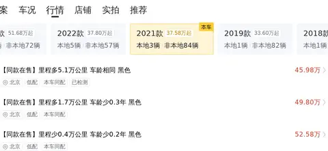 当前市场上,这款车的二手车行情大致在41万至50万左右。这里要说的是,市场行情价和最终成交价是有差异的,影响二手车价格的核心因素还是车况。