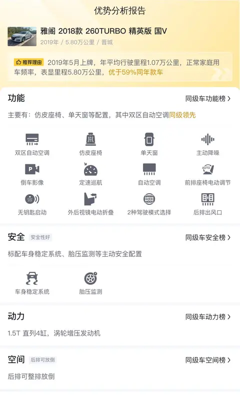 综上所述的新车含税价、用车成本、市场行情、优势分析、同款比价等数据仅供参考。在配置部分,因为二手车非标品,车辆可能会存在配置改装的情况,具体车况信息需要线下结合车辆实际情况进行综合参考。