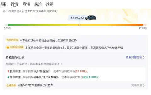 在二手车市场上,雅阁 2018款 260TURBO 精英版 国V的行情价是9.35万-11.09万,它的报价则是10.28万,价格上的优势不明显,但保值率较高,同时雅阁是B级车销量榜TOP4,证明其市场认可度高,是一款热门车型。