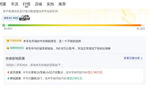 综上所述的新车含税价、用车成本、市场行情、优势分析、同款比价等数据仅供参考。在配置部分,因为二手车非标品,车辆可能会存在配置改装的情况,具体车况信息需要线下结合车辆实际情况进行综合参考。