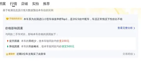 根据懂车帝平台的数据,目前的市场行情,这款二手MINI的售价在18.45万至22.21万之间。但请注意,市场行情价与最终成交价是有区别的。最终成交价会受到车辆状况、卖家定价、市场需求等多种因素的共同作用。这台二手MINI是2023款改款1.5T COOPER 艺术家,属于中配车型,配置和性能都比较出色。而且车辆是准新车,里程数仅为0.26万公里,这些因素都有助于提高车辆的售价。如果车辆状况良好,没有重大事故或维修记录,那么以19.88万的价格出售是合理的。同时,这个价格也考虑到了市场的竞争和消费者的需求,具有一定的竞争力。