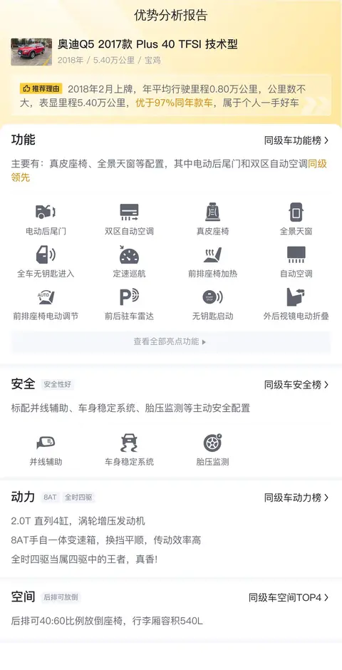 价格打下来了,豪车梦更近了。以上就是我们对这辆奥迪Q5 2017款 Plus 40 TFSI 技术型的部分介绍,如果您感兴趣,欢迎补充!