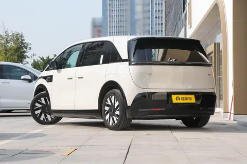 讲颜值,极氪MIX确实挺能打的。车头饱满圆润。配了贯穿式的前灯灯组和黑色修饰带。看起来就像戴了墨镜一样。有点酷,但又有几分呆萌和活泼。家用挺适合的,看着很快乐。