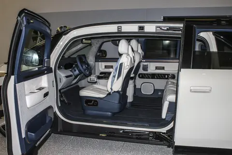 内饰设计走家居温馨路线。前排可以看到波浪式的仪表台配备三块大屏幕。有13.02英寸的仪表屏搭配了29英寸的AR-HUD显示。还有大尺寸的中控屏幕。新能源车的科技感,极氪MIX也充分体现出来了。