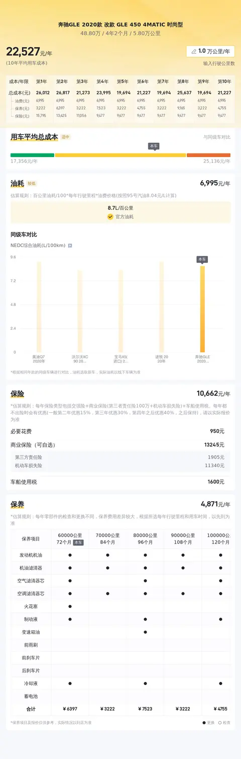 在用车成本方面,这款车的年均综合用车成本为23154元。这一数字相较于同级别车型来说处于适中的水平。当然具体的实际费用开销还是会根据车主的使用习惯和维护情况有所变动。