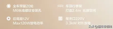 另根据官方信息,五菱之光EV全车预留20处M6标准螺纹安装孔,尾厢14处安装孔支持储物格、安置架等常见拓展配件安装,副驾仪表板可根据不同场景,安装多功能折叠桌板、杯托、手机支架等装置。车顶配备行李架,提供2.4平方米车顶拓展空间。