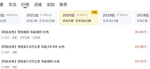 发现 2020款 3.0 V6 30周年特别版,新车含税价为83.95万,现在的二手车报价是34.28万,2020年1月首次上牌,在此期间过户2次。