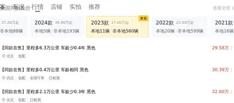 这辆车的上牌地为山西太原,上牌时间为2023年4月,表显里程2.9万公里,黑色车身,新车指导价50.41万,目前二手车报价38.38万,该车还没有过户记录。按照懂车帝车况分级标准,这辆车车况良好。
