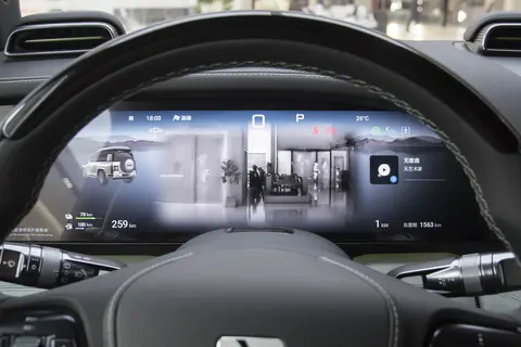 车内的屏幕配置也相当给力,12.8英寸OLED中控屏显示色彩鲜艳,触控反应灵敏,操作起来就像使用高端平板电脑一样流畅。23.6英寸全液晶仪表屏可以根据驾驶模式切换不同的显示主题,运动模式下,仪表盘会变成热血的红色,转速表和时速表以夸张的造型呈现,让人肾上腺素飙升;舒适模式下,画面则变得柔和温馨。23.6英寸副驾多媒体屏不仅可以独立操作,还能与中控屏联动,比如副驾设置好导航路线后,一键就能同步到中控屏。以瀑布意境为灵感打造的12.8英寸星河曲面屏,曲率达R800,与内饰巧妙贴合,37°的倾斜角度不仅与两侧23.6英寸的主副驾屏幕在空间上形成层次交错,营造出悬浮的立体效果,还将人机工程布局调整至适应状态。悬浮出风口以层峦叠嶂的样貌矗立在星河曲面屏之上,带来强烈的临场感。这么多屏幕,不仅显示清晰,操作起来也十分流畅,各种车辆信息、多媒体娱乐功能都能轻松掌控。副驾的朋友在长途旅行中,也能通过副驾多媒体屏尽情享受自己喜欢的娱乐内容,再也不会觉得无聊。