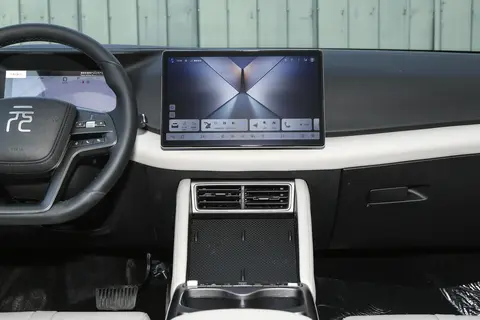 元 UP 的内饰以米色或黑色为主色调,给人一种温馨居家的感觉。仿皮座椅质感柔软,三幅式多功能方向盘握感舒适,营造出轻松舒适的驾乘氛围。8.8 英寸全液晶仪表盘与 12.8 英寸可旋转中控屏搭载 D100 车载智能芯片,支持 5G 网络、百度地图导航、车内 K 歌等功能,语音识别响应迅速,满足日常的娱乐和导航需求。值得一提的是,其内饰用料注重环保,大面积软质包裹减少了异味,对于有母婴的家庭来说更加安心。座椅支撑性优秀,长时间驾驶不易疲劳,虽然没有副驾躺平功能,但 4 向调节功能已经足够满足日常需求,打造出一个温馨且实用的车内空间。