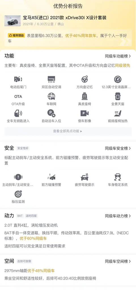 综上所述,这辆二手宝马X5(进口) 2021款 xDrive30i X设计套装凭借其卓越的性能、豪华的配置和合理的价格,成为了一款不可多得的二手车选择。如果您正在寻找一款既能满足日常出行需求又能彰显个性品味的豪华SUV,那么这款车绝对值得您的关注。