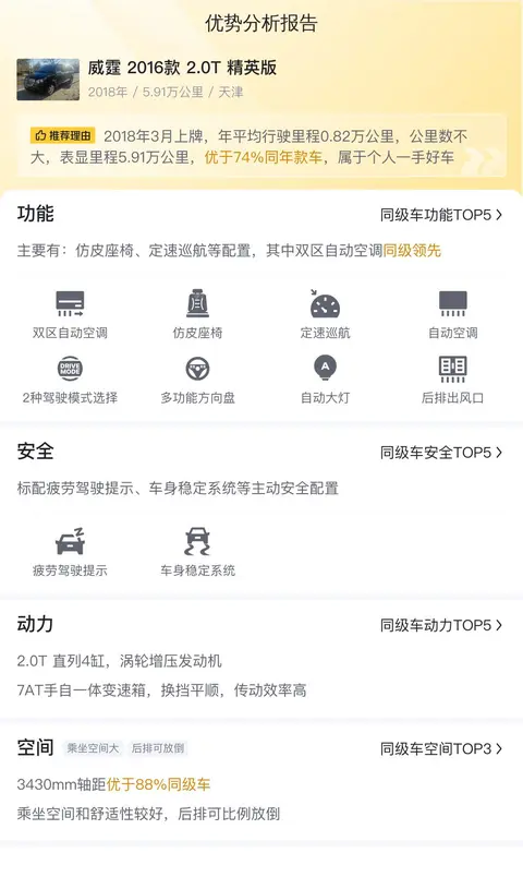 综上所述的新车含税价、用车成本、市场行情、优势分析、同款比价等数据仅供参考。在配置部分,因为二手车非标品,车辆可能会存在配置改装的情况,具体车况信息需要线下结合车辆实际情况进行综合参考。