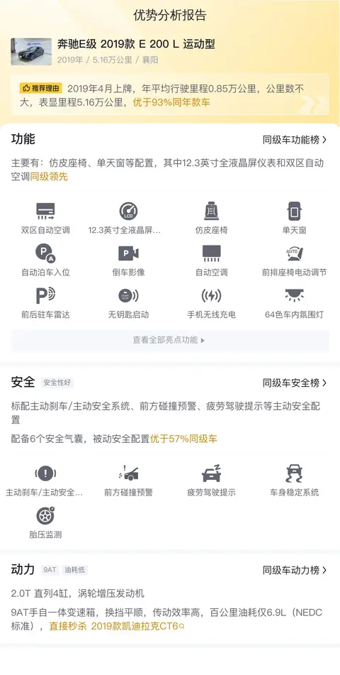 根据懂车帝的数据,这辆奔驰E级 2019款 E 200 L 运动型的市场行情价在20.16万至24.59万之间,而其当前的卖家报价为22.30万,位于市场价的中等水平。这个定价既不过于高昂,也不过于低廉,而是恰到好处地反映了这款车在当前市场条件下的合理价值。对于潜在的买家来说,这样的价格既提供了购买一辆高品质二手车的机会,又不至于因为过高的价格而感到压力。