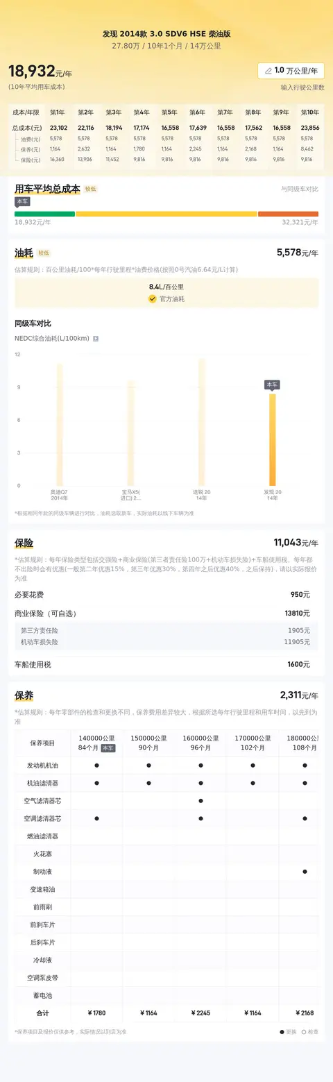 买车不只是买辆车,还得考虑养车的成本,咱们精打细算过日子,这台车的10年平均用车成本大概是19,188元/年,这其中包括油费约13,101元/年,保险费用大约是5,708元/年,保养费用嘛,大概在3,571元/年左右,当然,这个数字可能会根据您开车的习惯和用的保险服务有所不同。