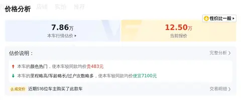 车况如此优秀,接下来咱们看看价格部分,在二手车市场,该车型的售价通常在11.65万至14.11万之间。具体售价因车辆的车龄、里程以及保养情况等不同情况而定。这台二手车的售价为12.50万,结合前面所说的车况表现,这个价格还是挺有吸引力的。