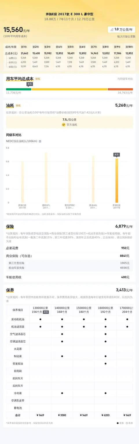 当前市场上,这款车型的二手车价格大约在18.2万到21.85万元之间。当然,具体的售价会受到车辆状况等因素的影响。关于用车成本部分,我们将为您进行详细分析。首先,油耗表现较为优秀,百公里油耗约为7.1L,低于82%的同级别车型。按每年行驶2万公里计算,每年油费约为1.14万元。保险费用方面,预估每年约8343元,这也是一个比较合理的费用。保养费用方面,该车的保养周期较长,且保养项目较少,每年预计需要3111元。此外,该车还具备良好的保值率,预计未来三年内贬值金额较小。