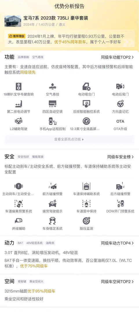 这辆二手宝马7系2023款735Li豪华套装以其卓越的车况、先进的技术配置及合理的用车成本,无疑为寻求豪华出行体验的消费者提供了一个极佳的选择。购买二手车时,建议您亲自到店查看车辆实际情况,同时也可以参考这辆车的状况,提出您的具体要求。针对这辆车,商家也表示会提供相应的售后保障措施,确保您购车无忧。在做出购买决策之前,不妨多比较、多体验,选择最适合您需求的车型。毕竟,每一辆宝马7系都承载着一种承诺,那就是无论世界如何变迁,都将为您带来纯粹的驾驶乐趣与无与伦比的豪华体验。
