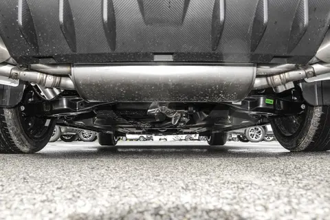 车辆尾部采用了溜背式的设计,尾箱盖上配备了电动扰流板,可随速升降,配合底部双边四出的排气方式以及大尺寸的扩散器,显得战斗感十足,贯穿式的尾灯造型时尚美观,中间的品牌LOGO采用了平面的处理,且运用了可发光的设计,点亮后具有较强的辨识度。